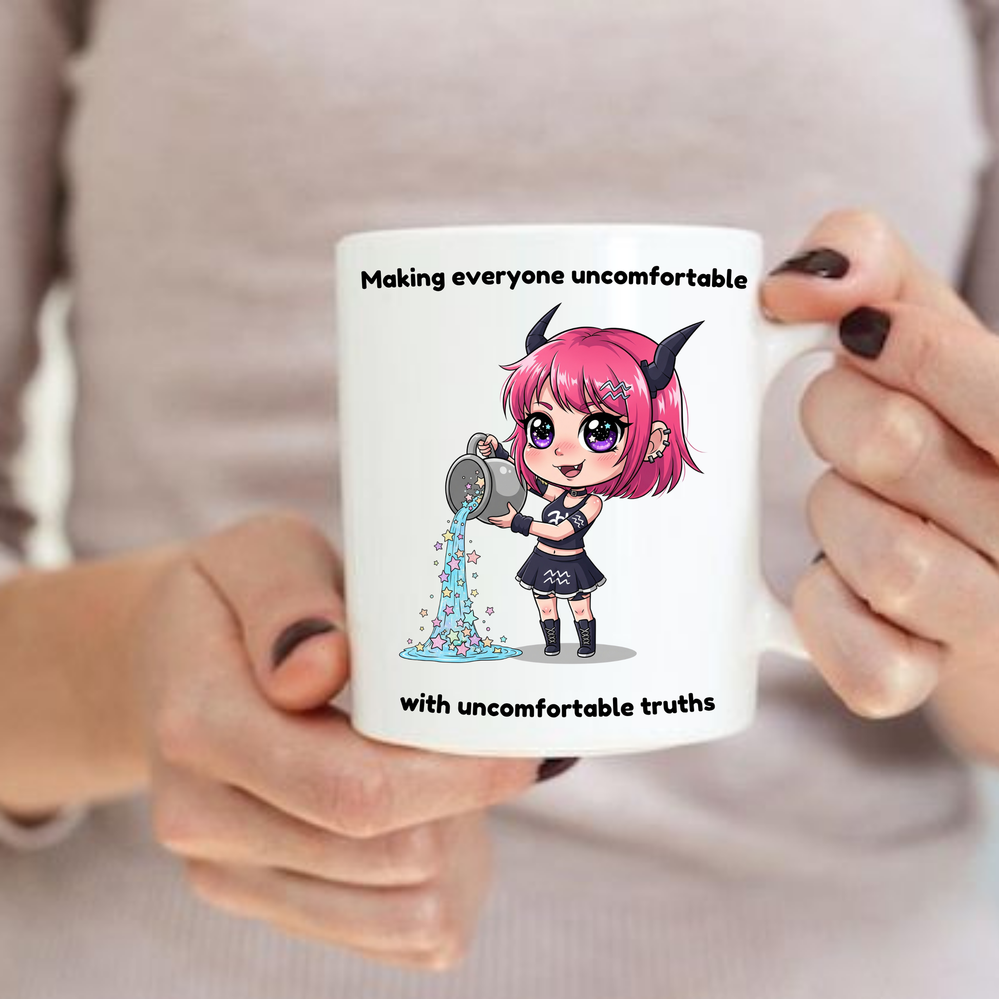 This sarcastic Aquarius coffee mug perfectly captures your truth-telling personality with a cute edgy aesthetic. Featuring the hilarious quote "Making everyone uncomfortable with uncomfortable truths" - because Aquarius honesty hits different!