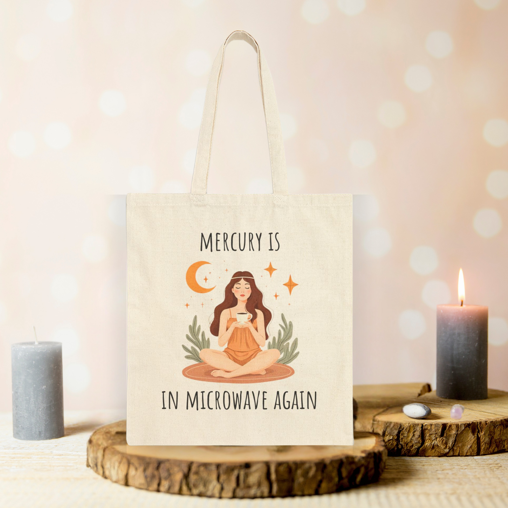 When everything goes wrong, and you're sure it's Mercury retrograde... or maybe it just fell into the microwave. This hilarious and stylish double-sided print tote bag is an essential accessory for anyone who loves astrology and spiritual vibes with a dose of sarcasm.